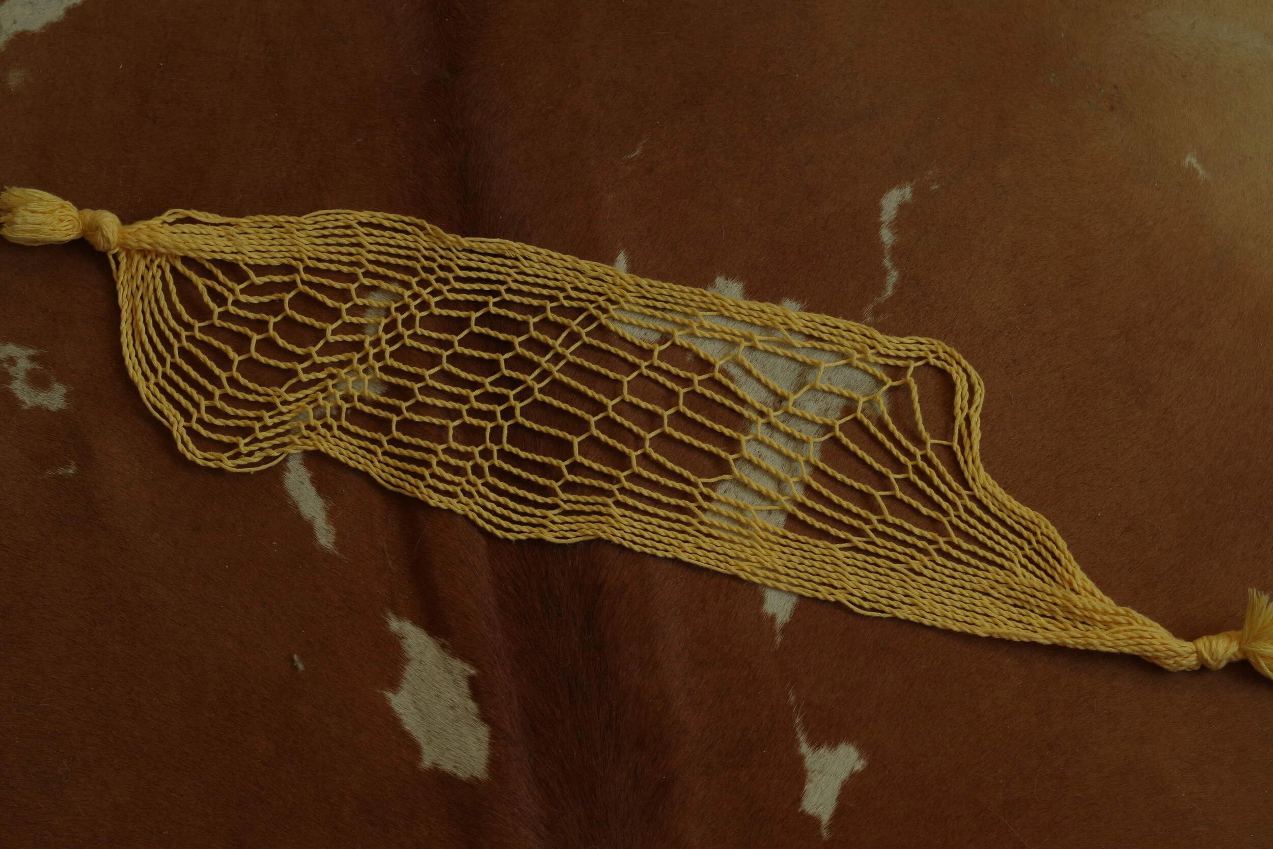 Nowadays, hammocks, chain-link fencing, and, arguably, shoelace closures are all modern, extant, even ubiquitous examples of this type of structural approach. These aside, weft-less fabrics have played a somewhat minor role in the textile industry, and have persisted largely as historical re-creation, or niche design, art, and craft.